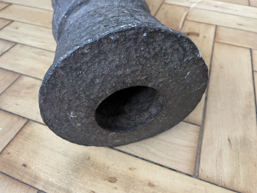 cast with a series of projecting bands, presumably intended for a swivel mount, waisted at the breech and pierced with a pair of holes for ignition (patinated overall), 72cm barrel, 6.5cm bore For related examples preserved at the Royal Armouries, Fort Nelson see H. L. Blackmore 1976, pp. 154-155, nos. 204-206.
