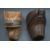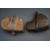 of characteristic shoe-shaped form; the first pair of copper alloy, engraved with scrolls and foliage on the top and with an integral suspension loop; the second pair of white metal, slightly smaller, and engraved with scrolls and foliage on top; the third pair each pierced with a pair of triangles and cast with raised bands framing the suspension loop; the fourth pair of copper alloy slipper form, each pierced at the rear and with a small U-shaped suspension loop; the fifth and sixth almost forming a pair, each cast in imitation of a buckle and with a scalloped design on each side of the suspension loop; the seventh stamped ‘G. Joppert & Cie, Rio da Janeiro’; the eighth of plain white metal; the ninth of copper; the tenth a small iron slipper-shaped stirrup; the eleventh of wood carved with a scrolling terminal and decorated with foliage and the twelfth similar, carved with geometric designs, the first: 11.5 cm high (16)