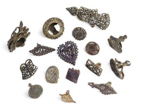 each with relief or openwork design, some with calligraphy, together with a tribal finger ring, 9cm long and smaller (16)