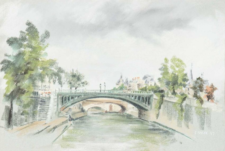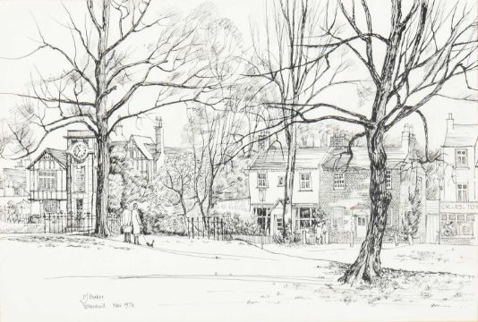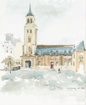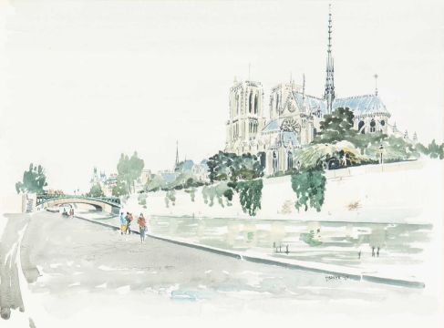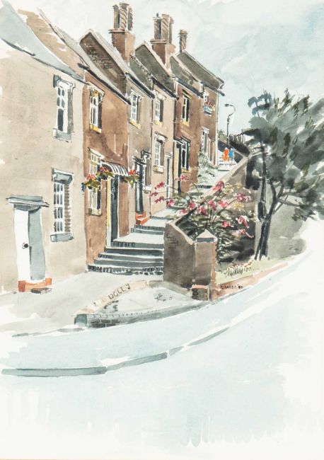 together with: eleven other watercolours and two pen and ink drawings including depictions of Tettenhall, St Germain des Pres, the River Seine, a still life of flowers and various landscapes