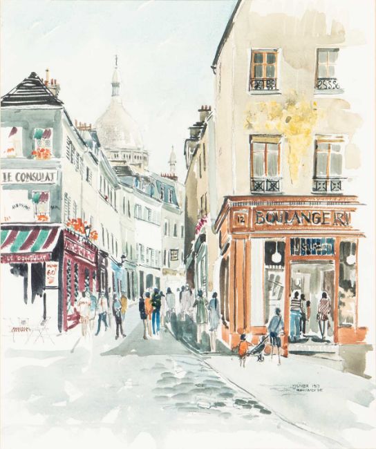 signed, titled and dated PJ BAKER, 1989 / MONTMARTRE lower right