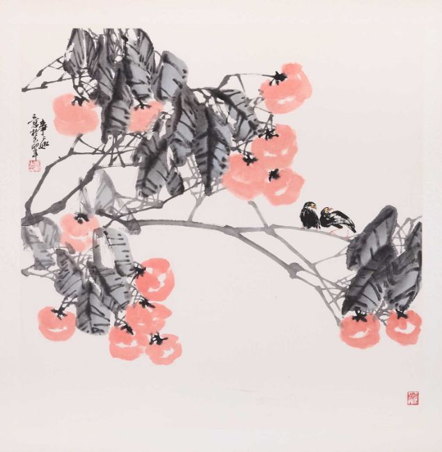 ink and colour on paper, 67 by 67cm, framed and glazed