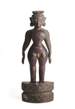 the nude male figure standing erect, his hands by his sides, wearing earrings and turban, 28cm