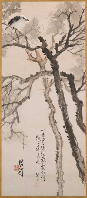 ink and colour on paper, two-line calligraphic inscription, signed and with a seal of the artist, framed and glazed, image size 65 by 28cm