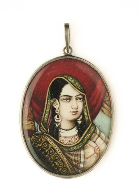 gouache with gold on ivory, of oval form, in silver frame with hanging loop, 5 x 4cm (painting)