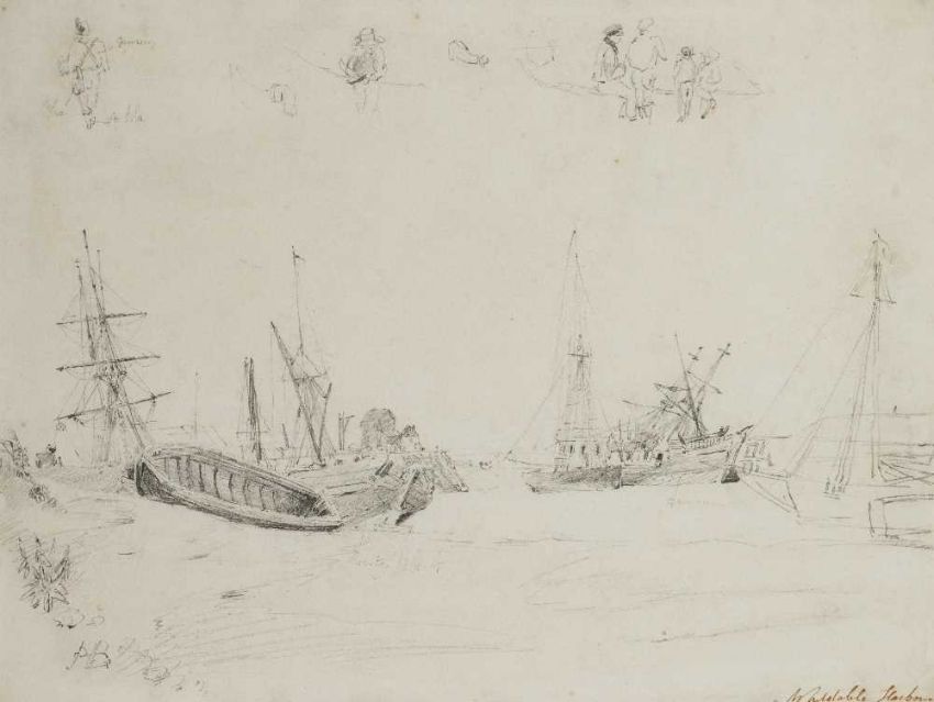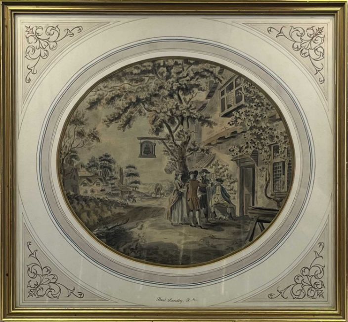 offered together with; HENRY WILLIAM BURGESS (C. 1792-1839) WHITSTABLE HARBOUR, titled lower right, pencil, 25.5 x 34cm; 10 x 13½in ?(framed) and MANNER OF PAUL SANDBY (1731 - 1802) FIGURES OUTSIDE A TAVERN, watercolour on laid paper, 32cm; 12 3/4in (oval); 44 x 48cm; 17 1/2 x 19in (framed)