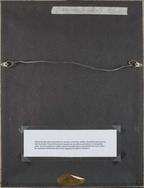 A SOLDIER DRESSED IN THE UNIFORM OF THE ROYAL ARTILLERY MOUNTED ROCKET CORP