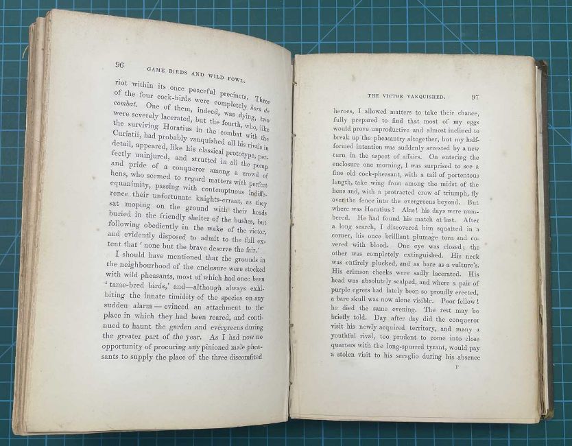 Gamebirds & Wildfowl: Their Friends And Foes, London, 1850, 265 pages, green calf with gilt etching to front board, bearing bookplates for William Bertram Bell and W.S. Curtis (Bill Curtis) (staining and wear to covers, a few spots of foxing)
