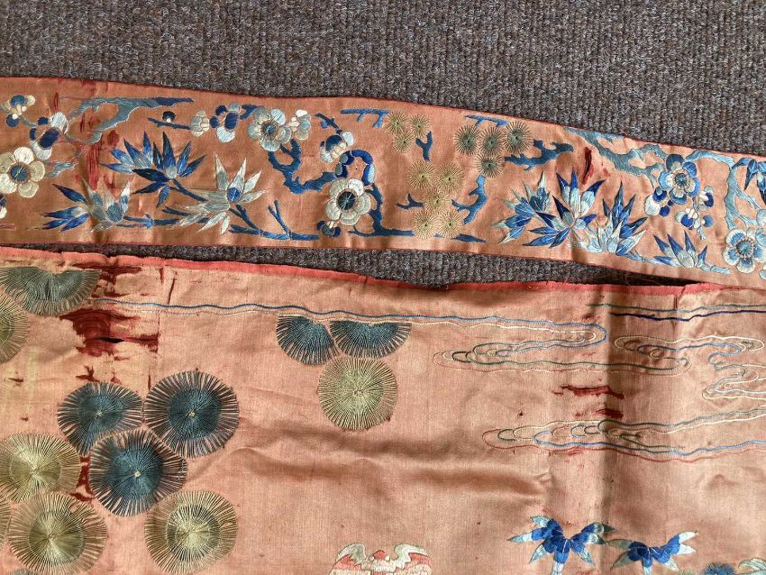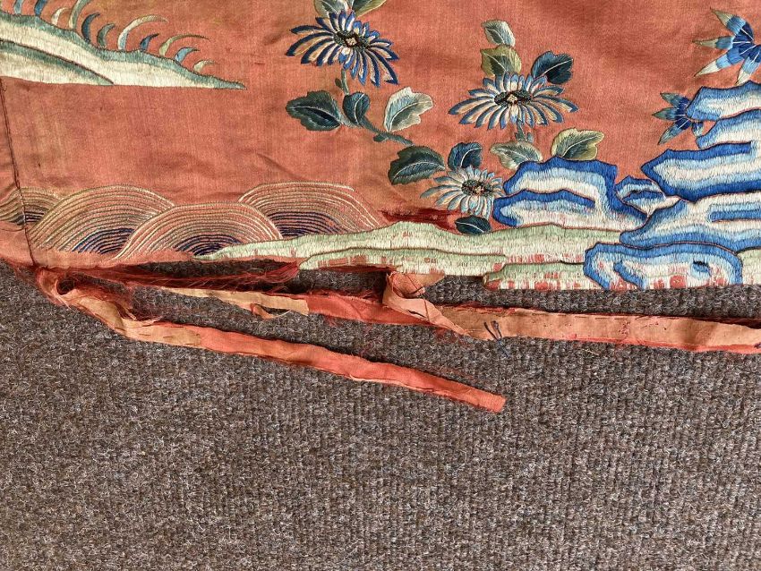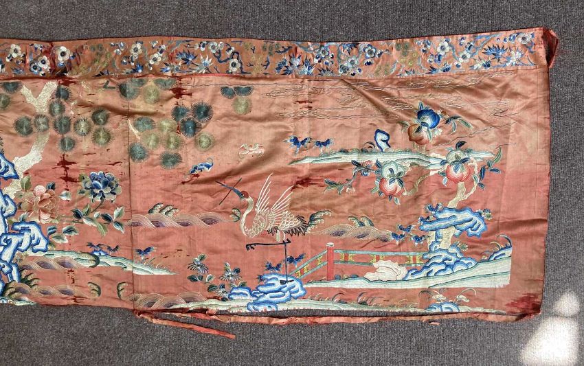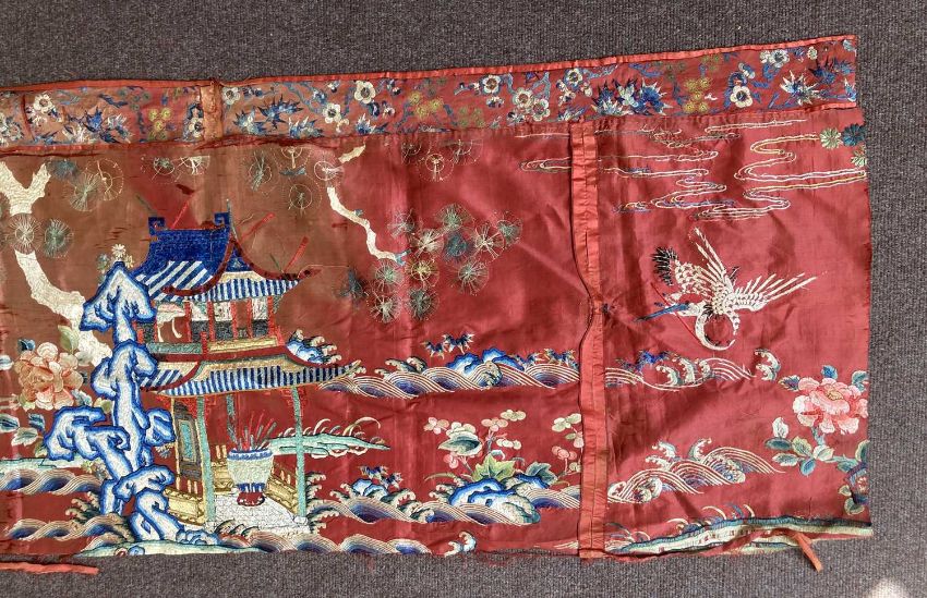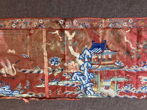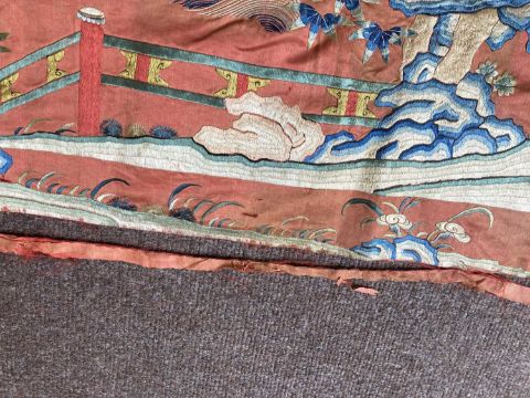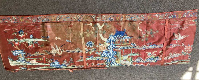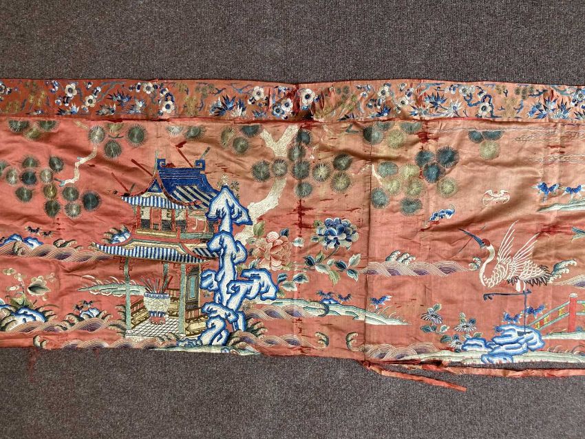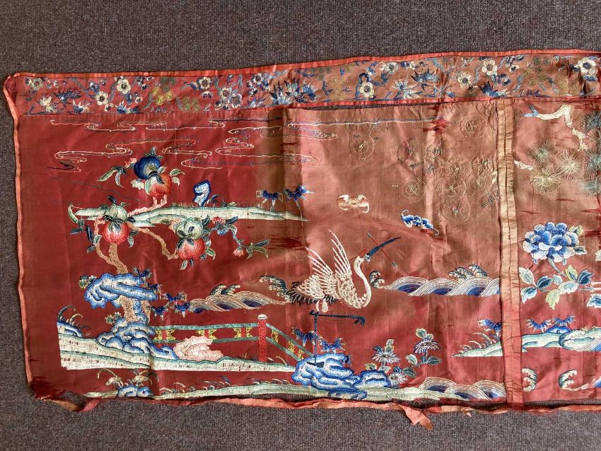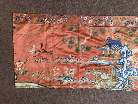 清十九世纪 「仙人图」丝绸刺绣