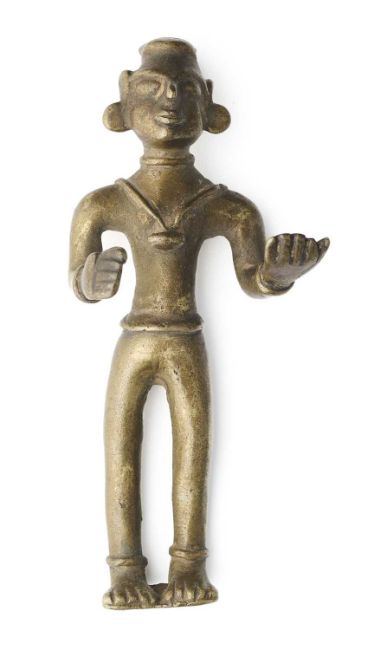 wearing belt, anklets, earrings and amulet on a necklace, his arms outstretched, 12.8cm high