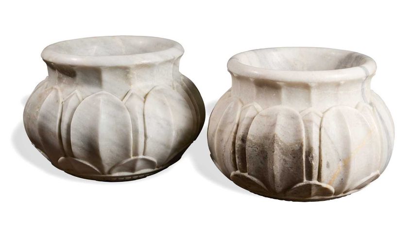 the sides craved with lotus design in relief, 30cm high each (2)