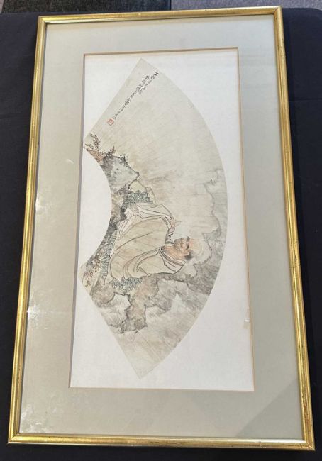 Examined framed, the fan painting is in good condition with the exception of a small tear to the mount.