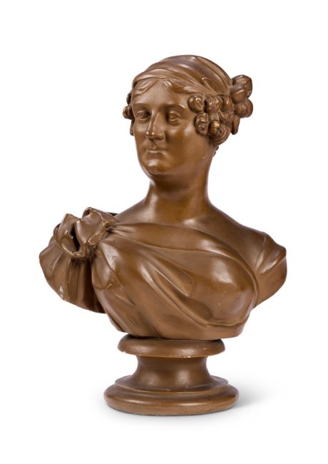 patinated plaster, head slightly turned, signed and dated to reverse 'Lucius Gahagan 1825', 35cm high