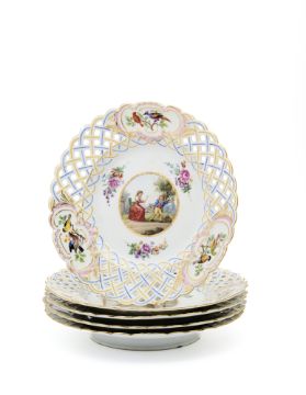 A SET OF FIVE MEISSEN PLATES, LATER 19TH CENTURY