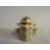 the octagonal straight-sided body rising from a pierced and carved ruyi foot and set at the side with a pair of dragon handles, the flat cover surmounted by a chilong finial, the stone of pale green tone with mottled cSavereamy-white inclusions, 7.5cm high