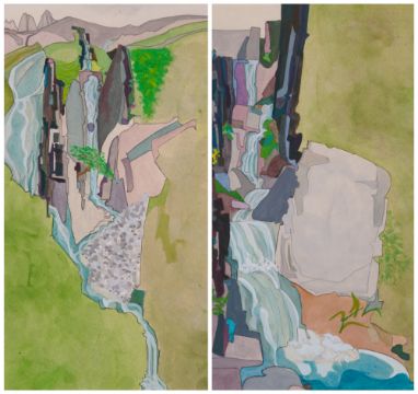 both acrylic over pencil on paper