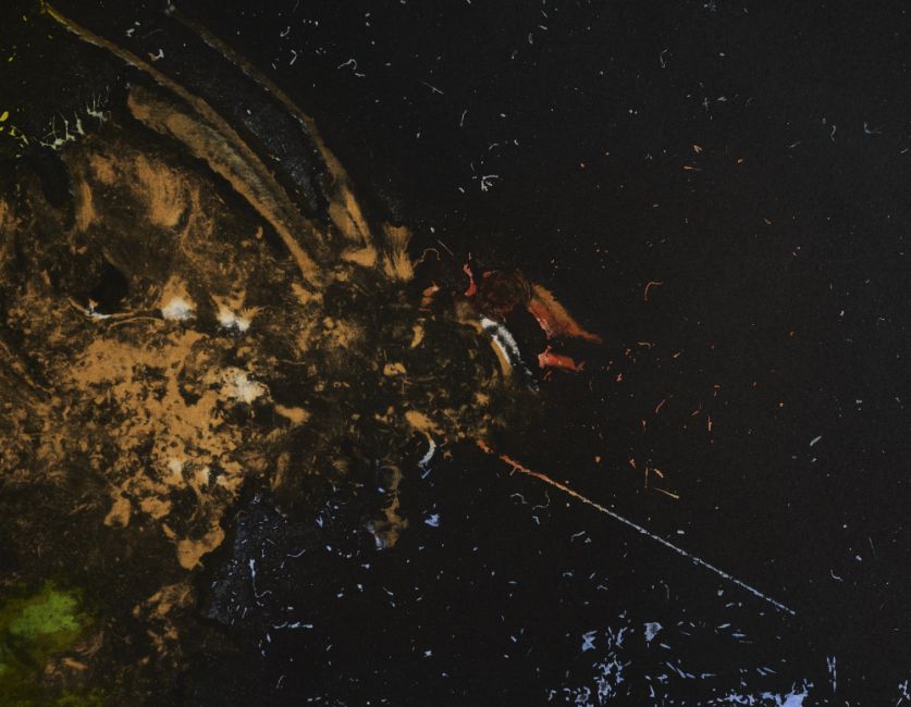 Collishaw embarked on the present series after his son was born in 2006 and he became preoccupied with disinfecting his flat, killing the bugs and insects that had accumulated. He began printing laser images of the flattened creatures, placing them into 35mm glass slide carriers and scanning them. Collishaw looked for facets of an image that could be manipulated into something identifiable. He commented of the series: 'As I manipulate them, the butterflies evolve into other beings. I discovered that to make them work, I had to find some other creature in there and tease it out. The right time to finish was when the beast had fully emerged... It was important not to push them further into caricature. They had just to hold a form together which was other than what they were, a squashed butterfly... It raises the question: is it construction or destruction?’
