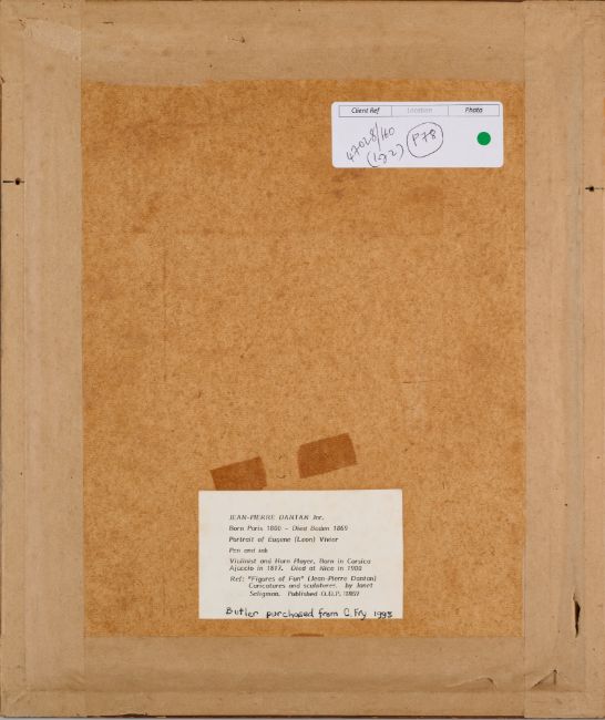 Jean-Pierre Dantan was known as Dantan the Younger (hence the present work initialed D.jr), his father being a wood carver and his elder brother also being a sculptor. He forged his reputation as a portrait sculptor who gained a reputation for caricature. He was in demand for capturing the likenesses of politicians of the day and those in music and the arts. His subjects ranged from Talleyrand to Beethoven, and he was a formative influence on the young Honoré Daumier.