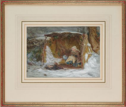 Executed circa 1865-66, the present work is likely a study for the larger watercolour by Shields, The Bread Watchers, 1866, now in the collection of Manchester City Art Gallery. According to Ernestine Mills in The Life and Letters of Frederic Shields, studies for the final work, including the present watercolour, had been made more than a year before. On one occasion, the artist worked for three days on a snow-covered field in Porlock with his model and other young boys and girls. The children were paid a pittance to frighten away birds with wooden rattles to protect the newly sown corn (London, 1912, p. 109).