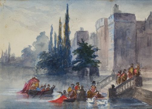 THE FAMILY OF KING CHARLES I ARRIVING AT WHITEHALL STEPS BY BARGE