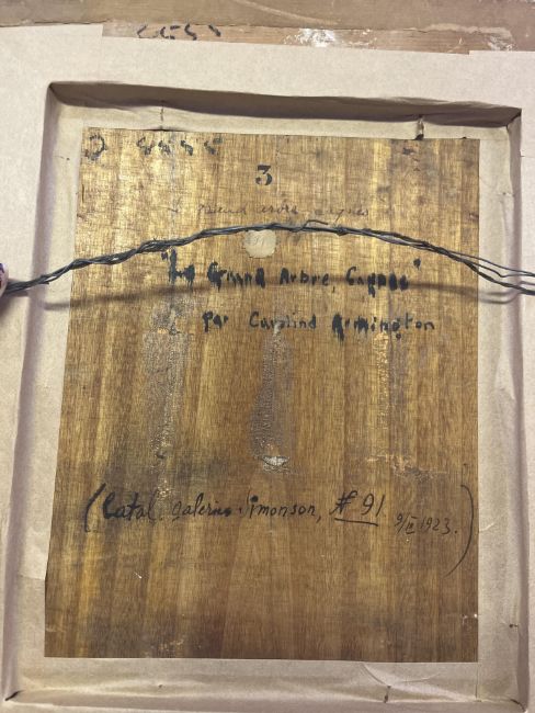 signed and dated Caroline Armington / 1919 lower left; titled and inscribed Le grand arbre / "Le Grande Arbre, Cagnes" / par Caroline Armington / on the reverse