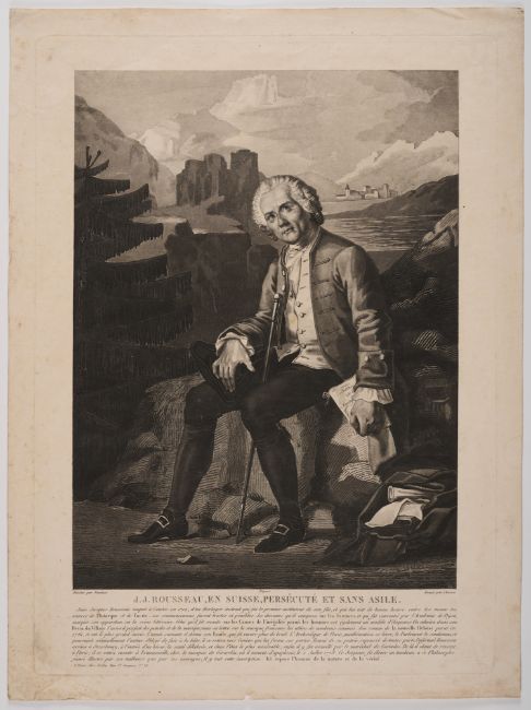 FREDERIC BOUCHOT (FRENCH B.1798) PORTRAIT OF J. J. ROUSSEAU, EN SUISSE, PERSECUTE ET SANS ASILE, engraving, 48 x 34.5cm; 19 x 13 1/2in
