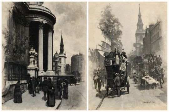 OUTSIDE ST PAUL'S CATHEDRAL AND AN OMNIBUS BY ST MARY-LE BOW, LONDON - A PAIR