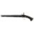 with two-stage barrel chiselled with leaves at the girdle, octagonal breech becoming polygonal and struck with an indistinct shield-shaped mark, plain tang, flat bevelled lock engraved with flowering foliage, cock with dog-catch and both engraved en suite, steel with internal spring, ebonised full stock with fluted fore-end and apron around the barrel tang, mounts comprising iron trigger-guard, white-metal ovoidal butt-cap, single ramrod-pipe and fore-end cap all engraved en suite with the lock, and ramrod with foliate engraved white-metal tip, 34.5 cm barrel