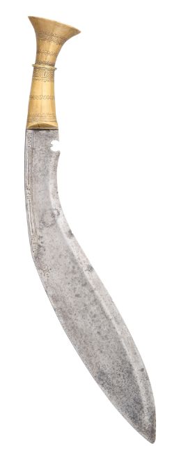 of characteristic form, the back of the blade (light pitting) at the forte incised with line and dot decoration, and waisted copper-alloy hilt with borders of incised line decoration, 31.6 cm blade