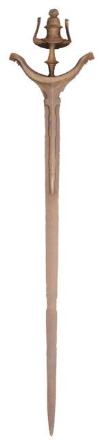 Related swords are in the Nambalakottai temple, Tamil Nadu, in the British Museum (inv. nos. 293376 and 096145) and in the Metropolitan Museum of Art (inv. no. 36.25.1324). See also Robert Elgood, Hindu Arms And Ritual, 2013, p. 190, no. 454.