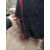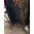 the first with elaborately embroidered borders to collar, edges, hem slits and red sleeve bands, worked with geometric patterns, guls, and stylised plants, the second with flowerhead and diamond embroidered collar with leafy vine pendants, all bordered with running vine and calyx motifs, red sleeve bands, block printed lining, approximate lengths 115cm, 120cm (2)