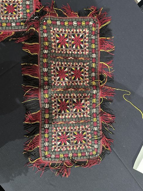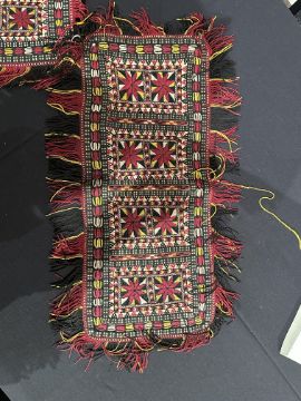 some losses to the embroidery on the two large panels, tent band generally in fair to good condition, Tekke panels in very good condition. Tent band length is 1,240 x 13cm.