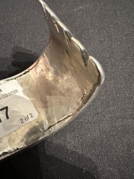 Overall wear, with inner lining surface slightly detached. Minor knocks to settings, small chip to border band.