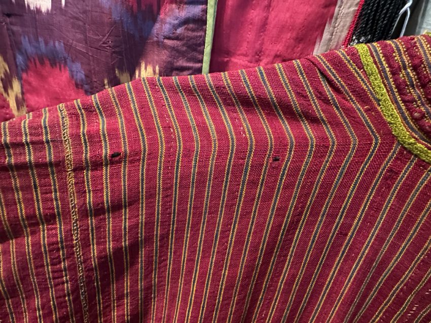 some light wear to edges, loose threads, rubbing and some losses to embroidery and overlocking (see additional photos), small holes, notably on sleeve folds on right hand chapan generally fair condition overall