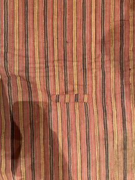 minor colour run in ikat, some small splits and spots in green silk, lined in striped cotton