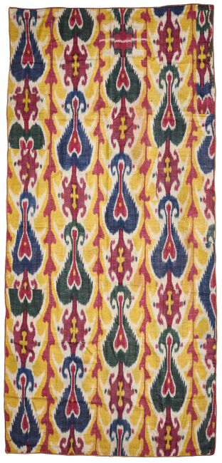 A panel of similar ikat is in the collection of The Textile Museum, Washington D.C., Accession Number: 2015.11.58, Gift of Guido Goldman in honor of Bruce P. Baganz. See also Clark, R., Central Asian Ikats from the Rau Collection, London, 2007, pp. 58-59 and Hale, A., Fitz Gibbon, K., et al, Ikats, Woven Silks from Central Asia, The Rau Collection, Oxford 1988, pp. 52-53 for a coat made up in a similar ikat.