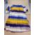 the longer with feathered bands of purple, ivory, blue and yellow, the other in shocking pink with large zig-zags, each with tablet braid trim and tie fastenings, approximate length 140cm, 134cm (2)