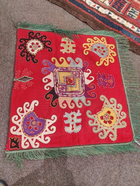 FOUR EMBROIDERED LAKAI TRAY COVERS (LALI POSH), UZBEKISTAN, EARLY 20TH CENTURY