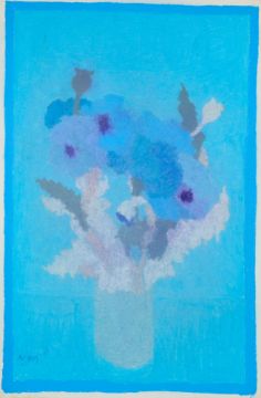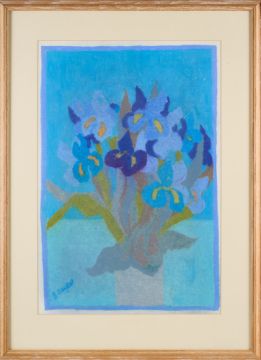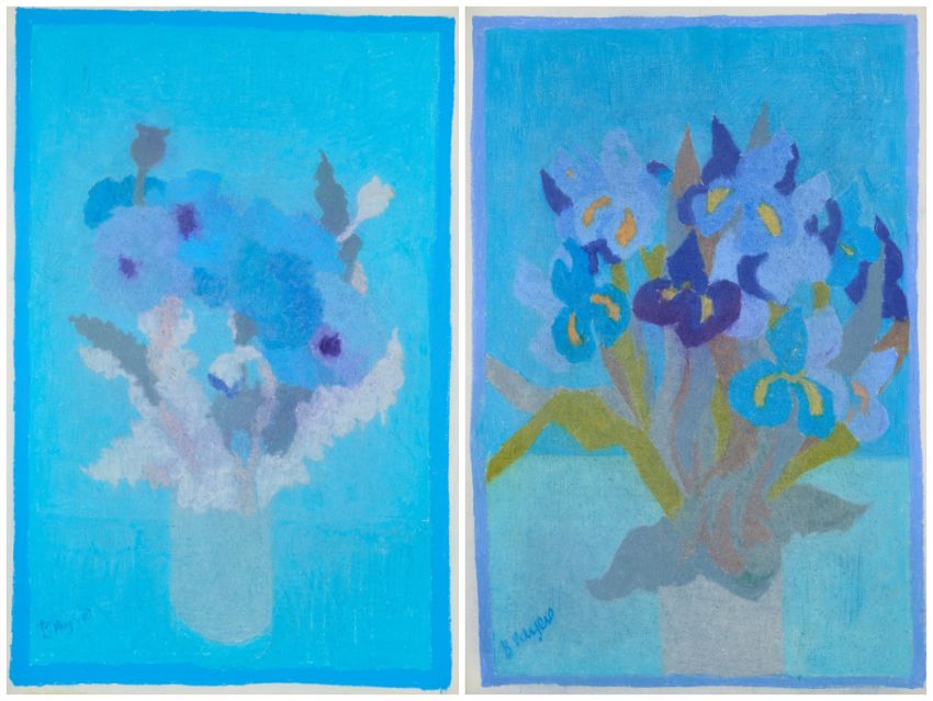 STILL LIFE WITH BLUE FLOWERS AND IRISES IN A VASE - A PAIR