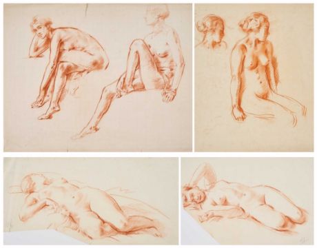 FOUR SKETCHES FROM LIFE: TWO SEATED FEMALE NUDES (I); A SEATED MODEL, FACE TURNED AWAY (II); RECLINING NUDE, TURNING AWAY (III); RECLINING NUDE, WITH ELBOW UP (IV)