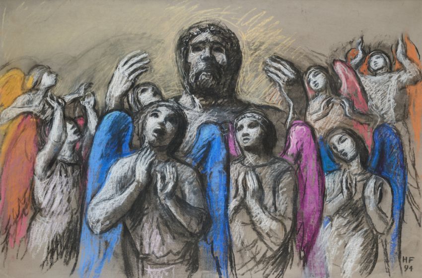signed with initials and dated 94 lower right; charcoal and coloured pastel on paper; 51 x 78cm; 20 x 30 3/4in (72 x 98cm; 28 1/4 x 38 1/2in framed)