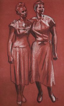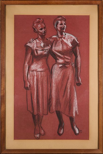 signed with initials and dated 50 lower right; charcoal and white on burgundy paper; 65 x 39cm; 25 1/2 x 15 1/4in (79 x 53cm; 31 x 21in framed)