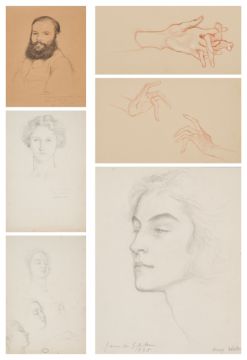 signed, dedicated and dated To my friend B. Whitchurch Howell / Jane de Gleyn / Jan 1916 / arc en Barrois; black chalk, heightened with touches of red and white on paper; 31.5 x 25cm; 12 1/4 x 10in (i); signed and dated Jane de Gleyn / Aug 1922 lower right; with the artist's estate stamp and inventory number 1275 (recto); pencil on paper; 39 x 27cm; 15 1/4 x 10 1/2in (ii); with the artist's estate stamp and inventory numbers 1270 & 1271; both sanguine on paper; both 22.5 x 31cm; 8 3/4 x 12 1/4in (iii); signed and dated Jane de Gleyn 1920 lower right; pencil no card; 25.5 x 20cm; 10 x 8in (iv) (all unframed)