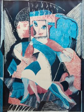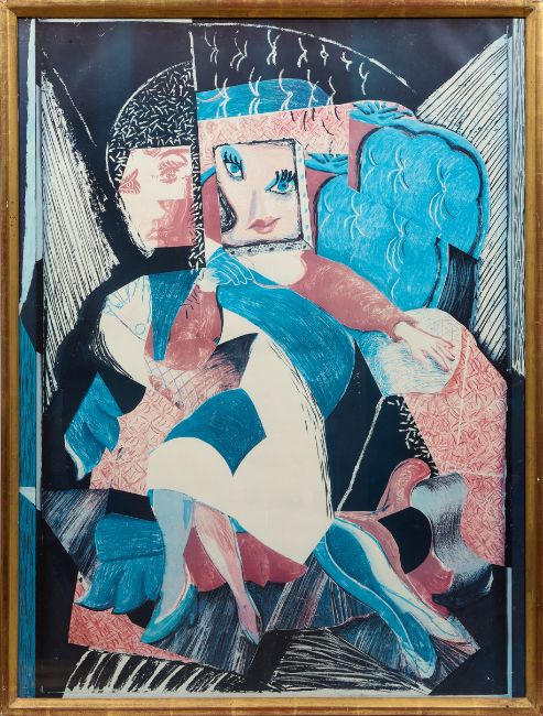 offered together with a colour reproduction of a painting of Celia seated by David Hockney (British b.1937)