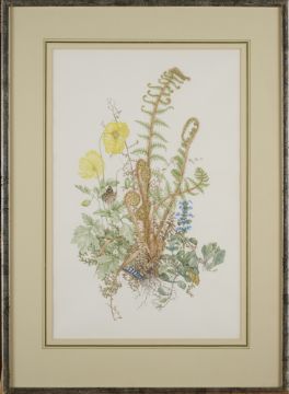 Born in Wales to Scottish parents, Grierson is considered as one of the most distinguished floral artists in her field. She studied at Battersea Polytechnic and served in the Women's Auxiliar Air Force during the Second World War where she examined aerial photos taken after air raids in Germany to assess the damage done. After the war she worked for Hunting Aerosurvey, a cartographical firm making maps from aerial photographs. In the late 1950s the company sent Grierson on a botanical illustration course at Flatford Mill in Suffolk where she was mentored by John Nash (1893-1977) for the following next 10 years.