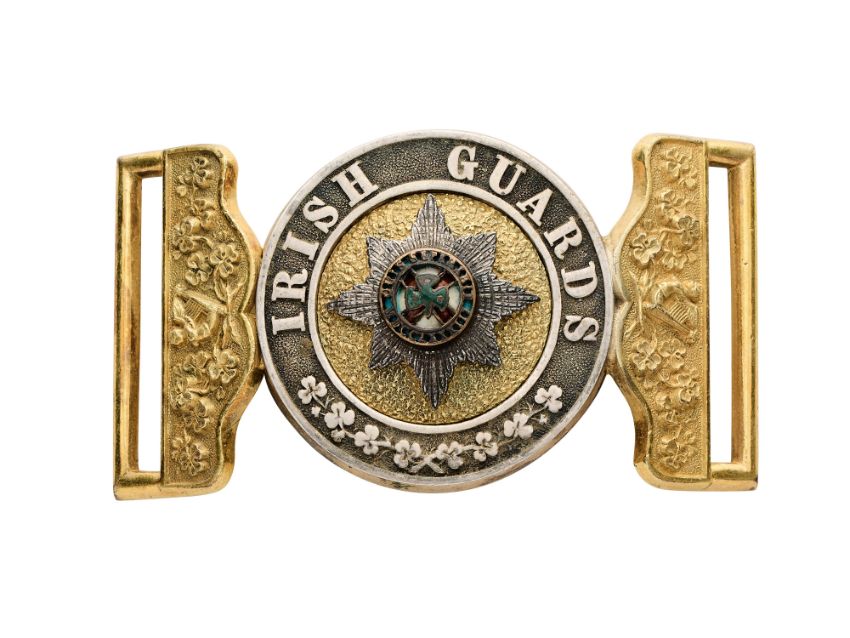 in gilt with silvered circlet having regimental details and the seeded centre mounted with enamelled regimental badge (losses)