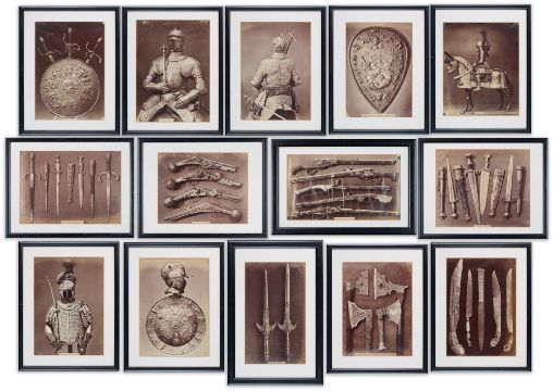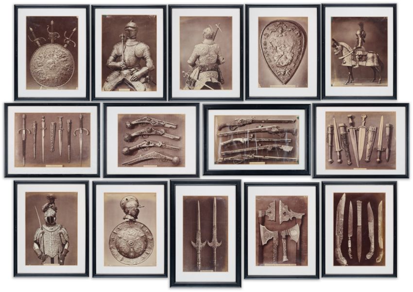 FOURTEEN ALBUMIN PHOTOGRAPHIC PRINTS OF ARMOUR AND WEAPONS IN THE SAXON ROYAL ARMOURIES,