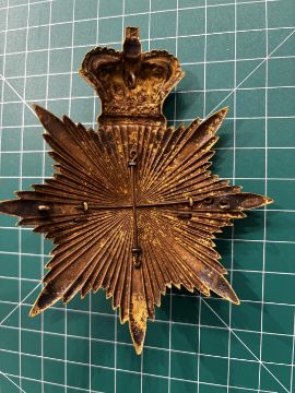 the crowned Order of the Thistle starburst with silver circlet having voided motto ‘NEMO ME IMPUNE LACESSIT’, thistle to centre on green enamel backing and lower scroll inscribed ‘THE ROYAL SCOTS’, with three loops to reverse