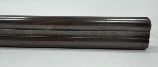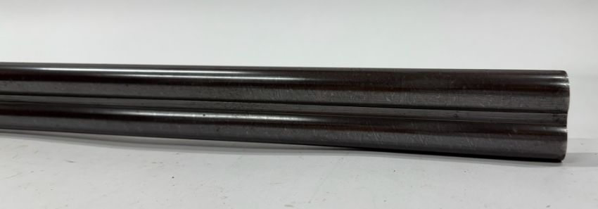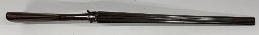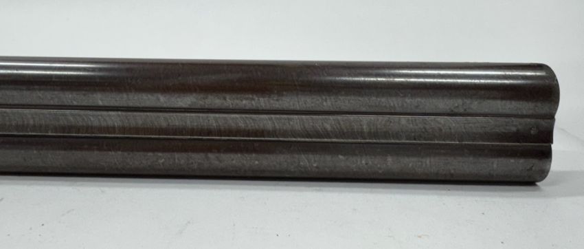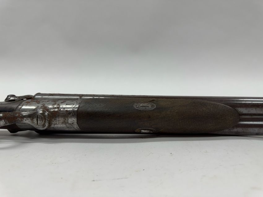 with twist barrels (rib signature worn, some pitting in the bores), signed back-action locks, chequered grip and detachable fore-end, and border engraved steel mounts (old wear and scattered surface rust), 75.8 cm barrels