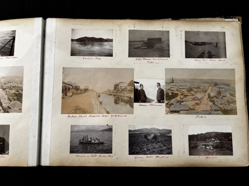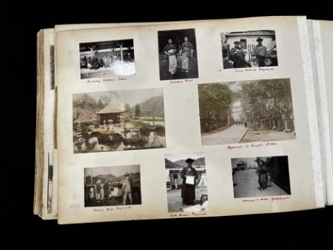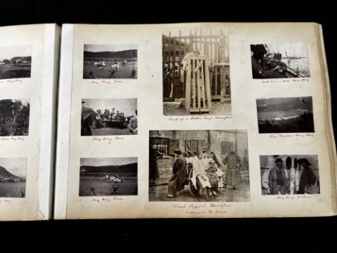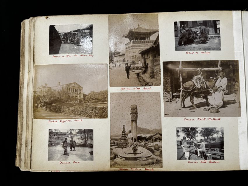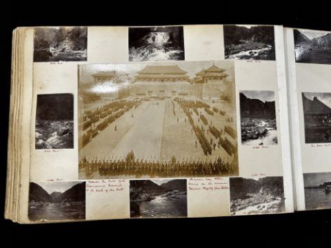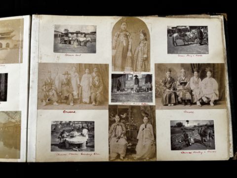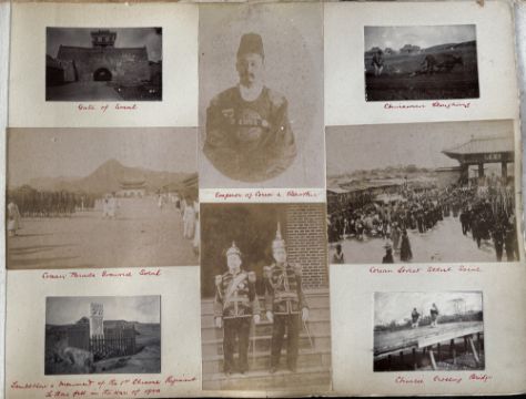 The album contains both personal and professional photographs and shows Shanghai, Ningpo, Hankow, ‘Lu Hung Chang and family’, Prince and Princess Henry of Prussia at Kiaochow (Kiautschou), Hong Kong, Canton, the Forbidden City in Beijing (including a photograph of soldiers on parade following the death of Queen Victoria, and another parade in honour of the German Emperor’s birthday); views of the Summer Palace; views in Japan, and about 30 photographs of Korean people and views in Seoul including the palace wall, street scenes, the British Legation, and portraits of the Emperor of Korea and his brother.